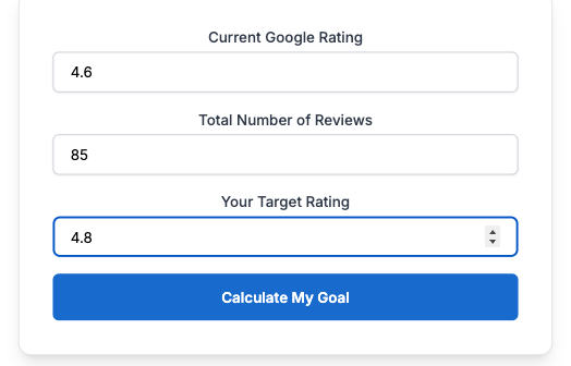Enter your current Google rating, the total number of reviews you have, and the new average rating you want to achieve.