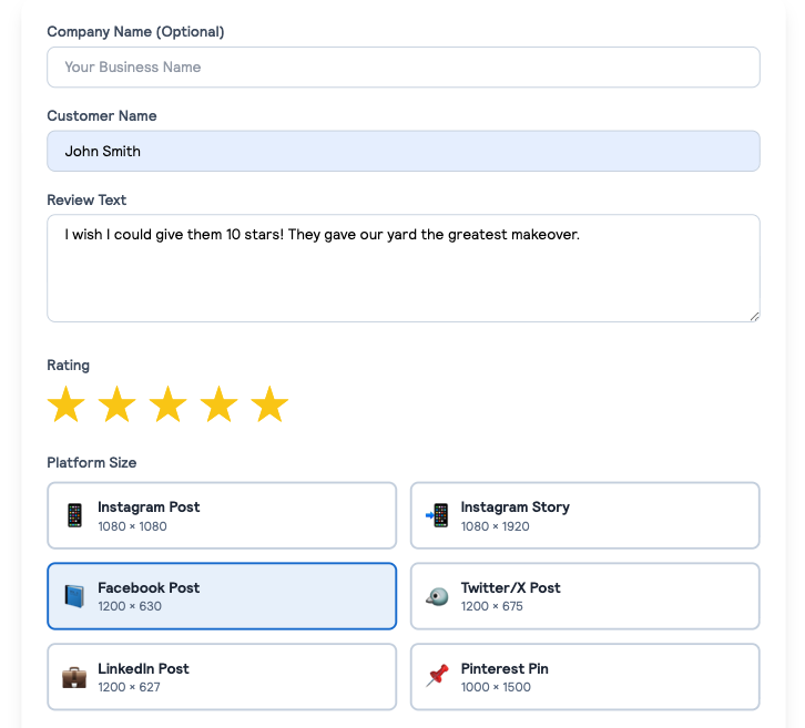 Fill in the Details: Enter the Customer Name and paste the Review Text into the fields. The Company Name is optional.